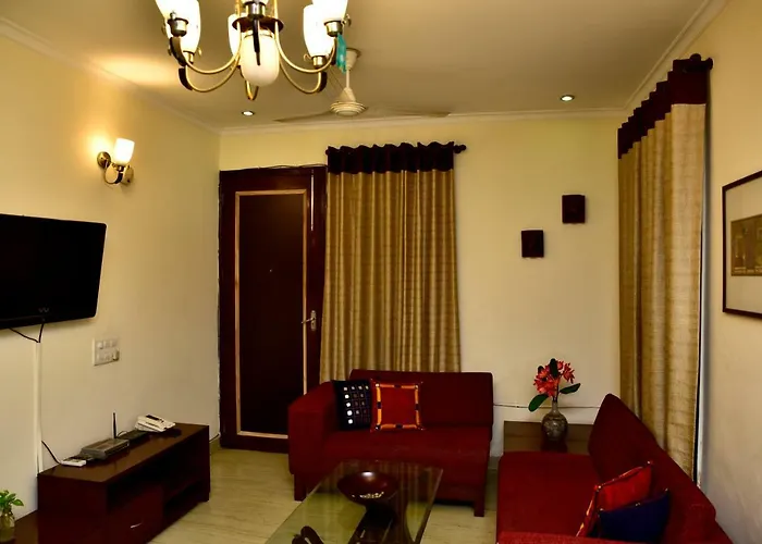 El hotel 2Bhk Comfortable Furnished Serviced Apartments In Hauz Khas - Woodpecker Apartments Nueva Delhi está situado a 5 minutos a pie de Bijay Mandal y cuenta con una barbería. El Santuario Nizamuddin Dargah está a 7 km y puedes llegar al Fuerte de Tughlaqabad en 15 minutos en coche.